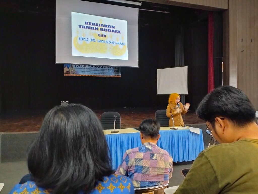 Pembukaan kegiatan dilakukan pada 24 November 2025 dan diawali dengan pemberian materi terkait arah kebijakan pemerintah dalam pemajuan kebudayaan oleh Kepala UPTD Taman Budaya Dinas Pendidikan dan Kebudayaan Provinsi Lampung, Desiana, SE., MM. Materi ini memberikan gambaran mengenai posisi dan peran pemerintah dalam memperkuat program seni budaya, termasuk pentingnya peningkatan kapasitas pelaku seni dan aparatur budaya agar mampu menyelenggarakan kegiatan yang sesuai regulasi dan perencanaan yang baik. Setelah itu, peserta memasuki materi teknis mengenai pengelolaan dan manajemen panggung yang disampaikan oleh Abdul Salam, bersama Nazaruddin, S.Sn. dan Dra. Nursini Margiastuti. Sesi ini membahas pembagian fungsi kerja dalam tim pertunjukan, alur produksi, serta kebutuhan perencanaan agar pertunjukan dapat berjalan sesuai kapasitas yang dimiliki masing-masing daerah.