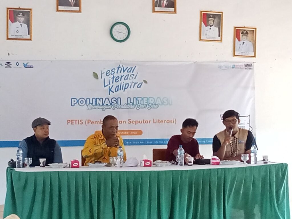 Lampung Timur, 12 Oktober 2025 — Rangkaian kegiatan Festival Literasi Kaliptra 2025 resmi mencapai puncaknya pada Minggu (12/10) di Balai Desa Jaya Asri, Kecamatan Metro Kibang. Setelah sebelumnya sukses menggelar, Workshop Menulis Cerita Anak, dan Workshop Mendongeng, acara puncak kali ini ditutup dengan sesi PETIS (Pembahasan Seputar Literasi) yang menjadi forum refleksi dan semangat baru bagi para pegiat literasi.