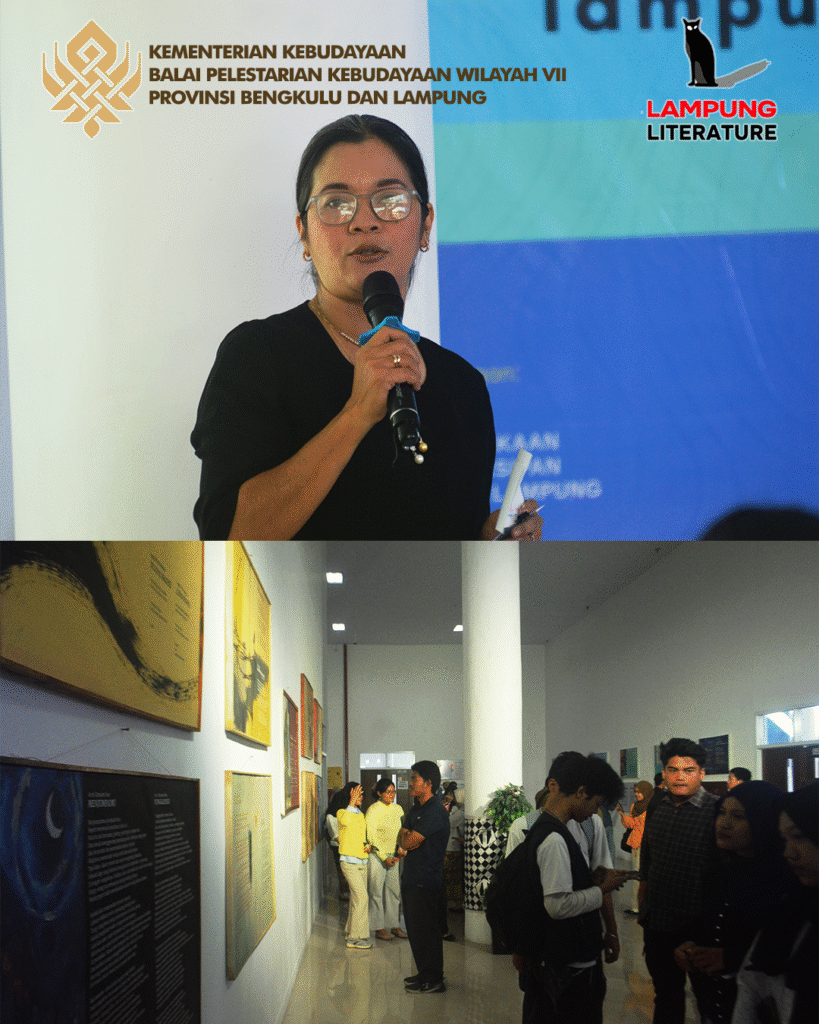 Iskandar, Penanggung Jawab Lampung Literature, menyampaikan bahwa pameran ini merupakan upaya untuk menumbuhkan kembali elan vital bahasa Lampung melalui seni.