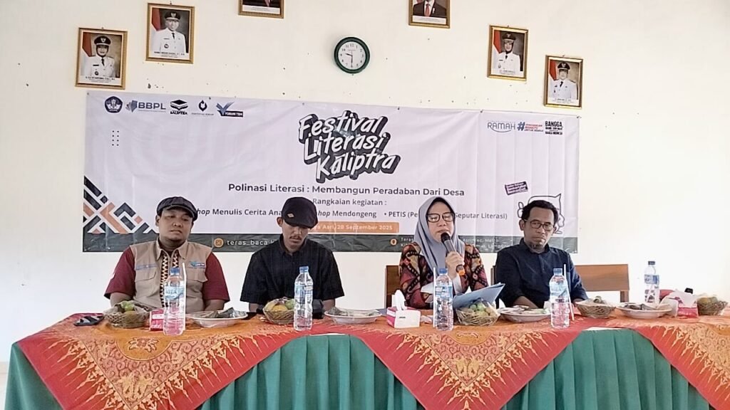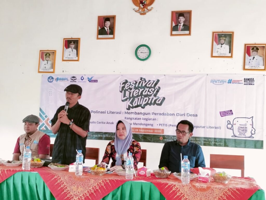 Lampung Timur – Teras Baca Kaliptra membuka rangkaian Festival Literasi Kaliptra 2025 dengan menggelar Workshop Menulis Cerita Anak di Balai Desa Jaya Asri pada Minggu (28/9/2025). Kegiatan perdana ini menjadi pemantik untuk menumbuhkan budaya literasi baca tulis di tengah masyarakat, khususnya di wilayah pedesaan.